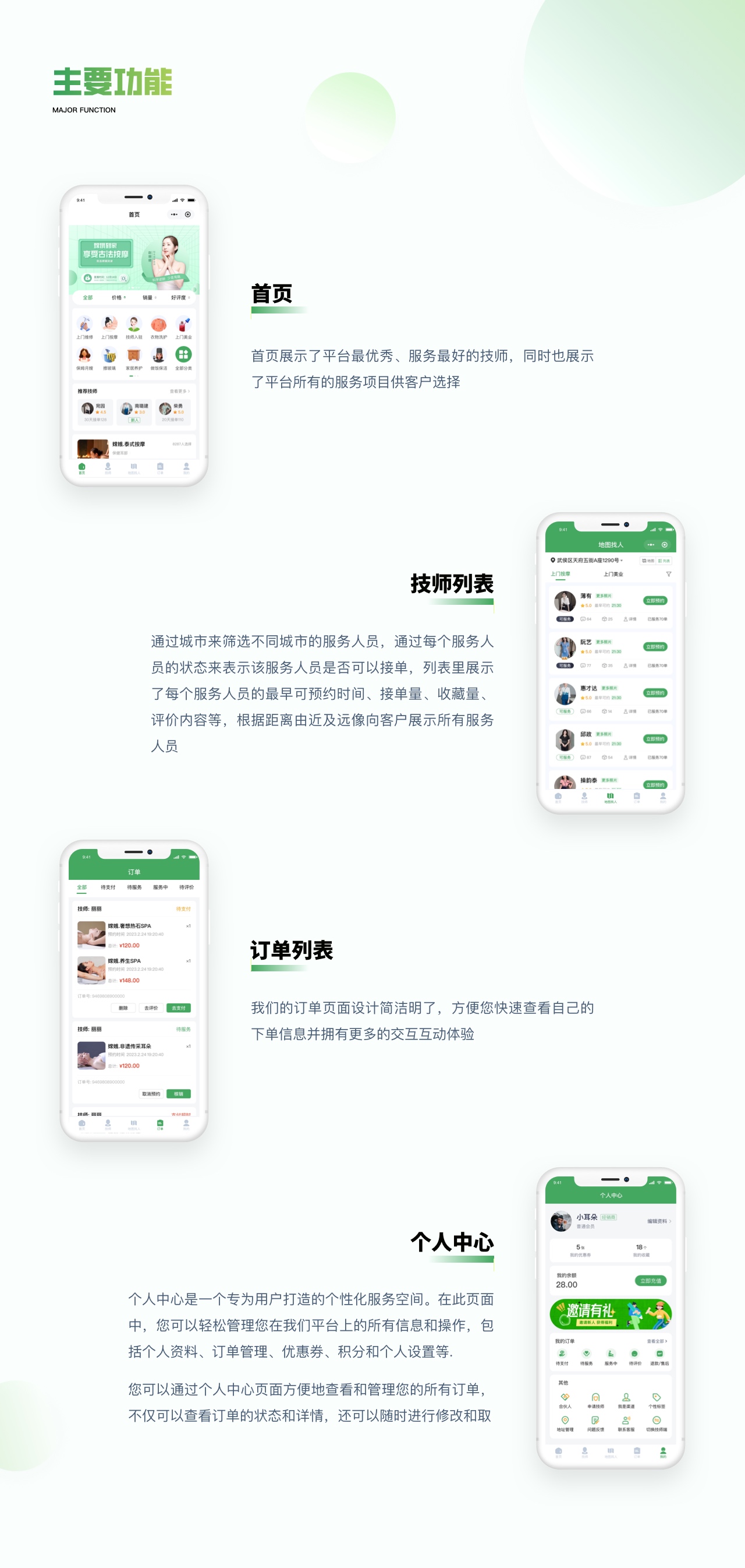 為了使您的服務(wù)更加便捷,我們提供了充值功能,可以購買自定義或指定的充值套餐。您可以隨時在個人中心查看我的訂單和售后退款訂單,以及您收藏的技師列表。
