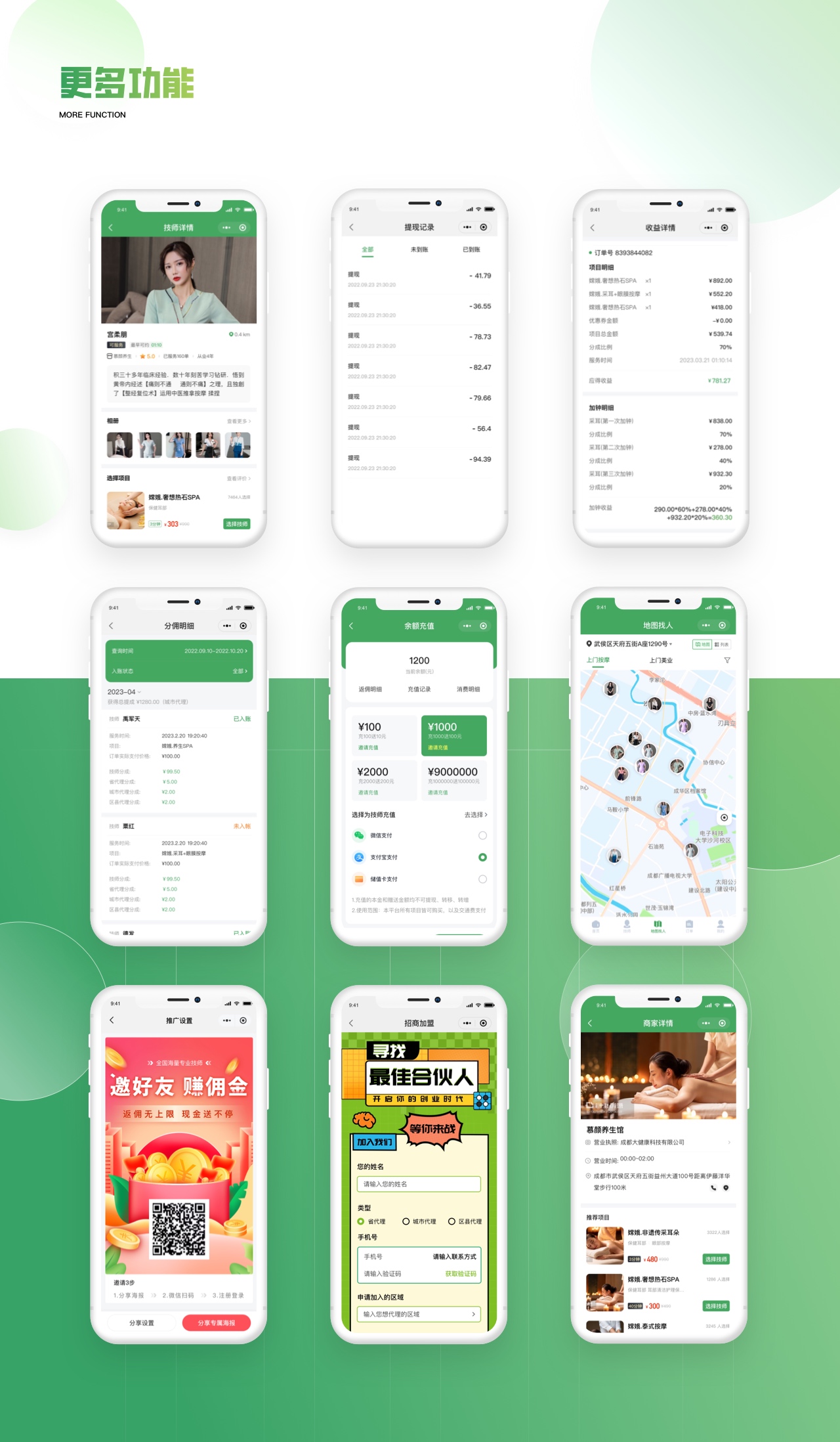 我們同時支持用戶申請成為分銷商和城市代理商。前者需要用戶審核才能獲得分銷資格,隨后可以查看自身的分銷海報、推廣粉絲和傭金明細;而后者需要用戶聯(lián)系平臺開通城市代理賬號,以便自行招募技師,并可在PC端查看招募的技師和財務(wù)數(shù)據(jù)。
