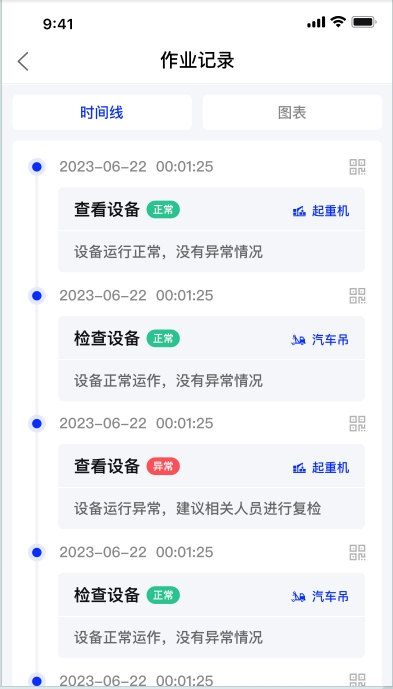 管理人員可以基于時間線的形式查看設備的作業記錄。同時支持以圖表的形式展現。